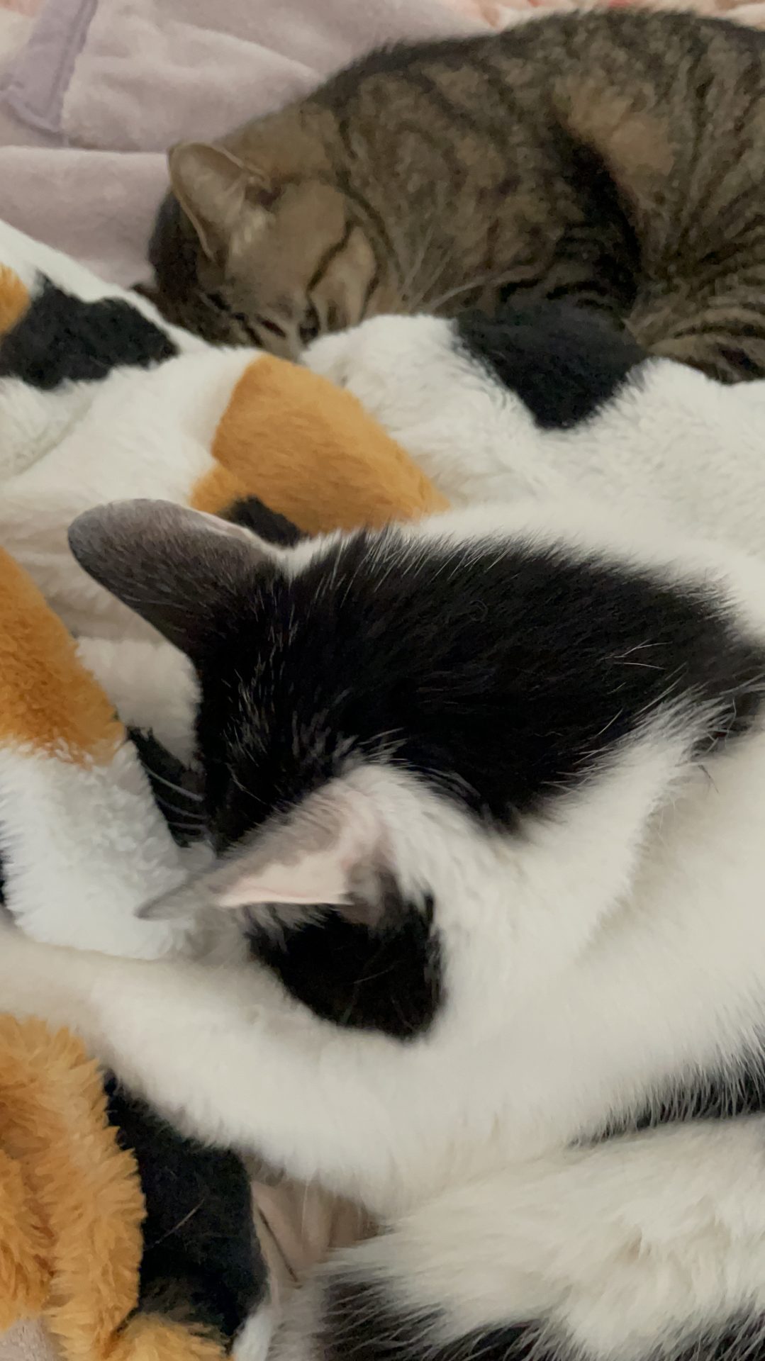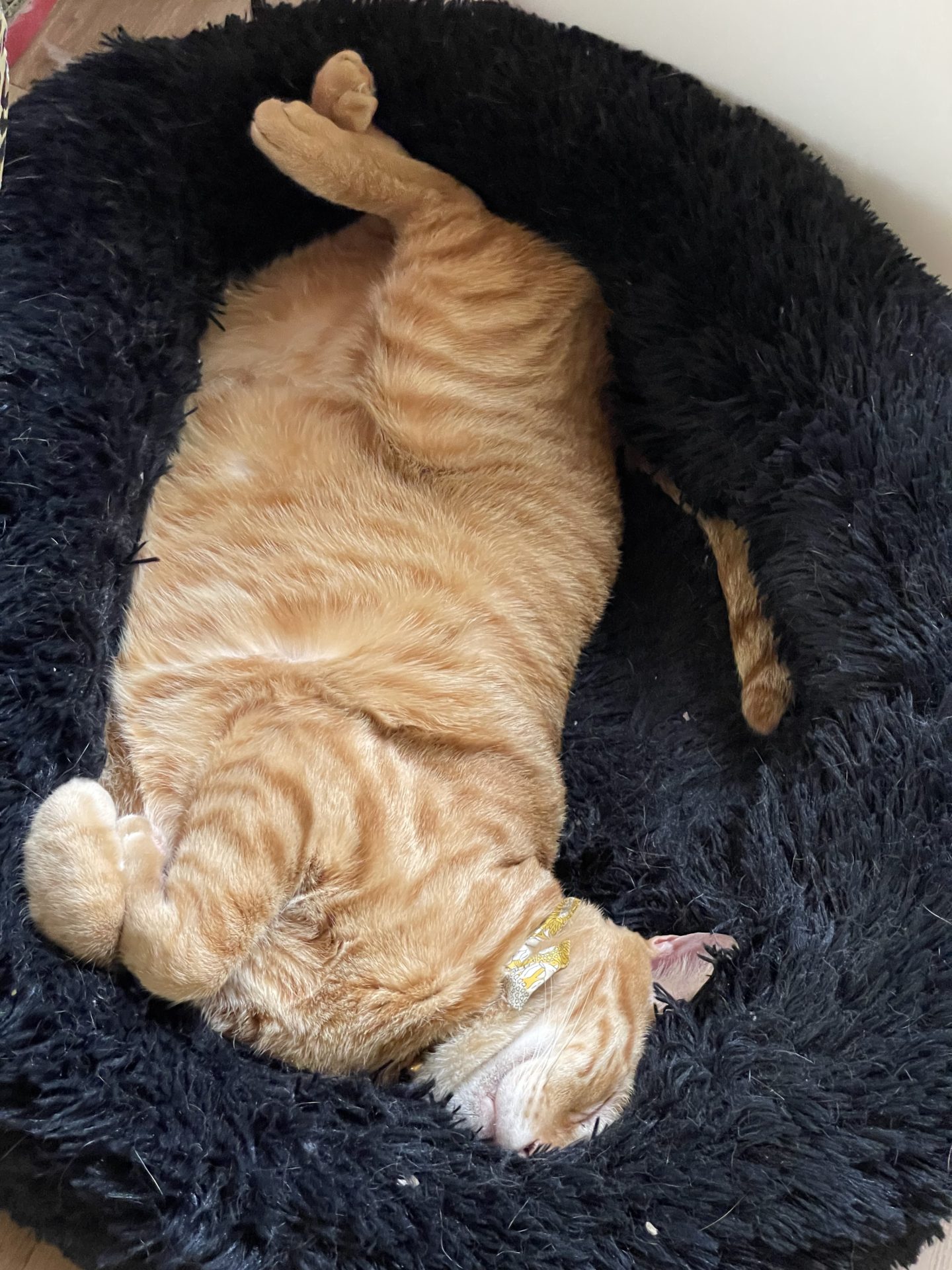 1人伸び伸び寝てるかるくん。呼吸苦しくないのか気になる。