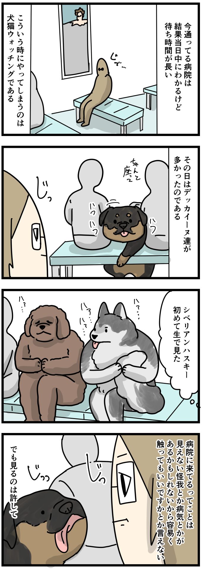 四方八方から大きい犬たちの緊張からくる荒い息が聞こえてきてちょっと面白かった。