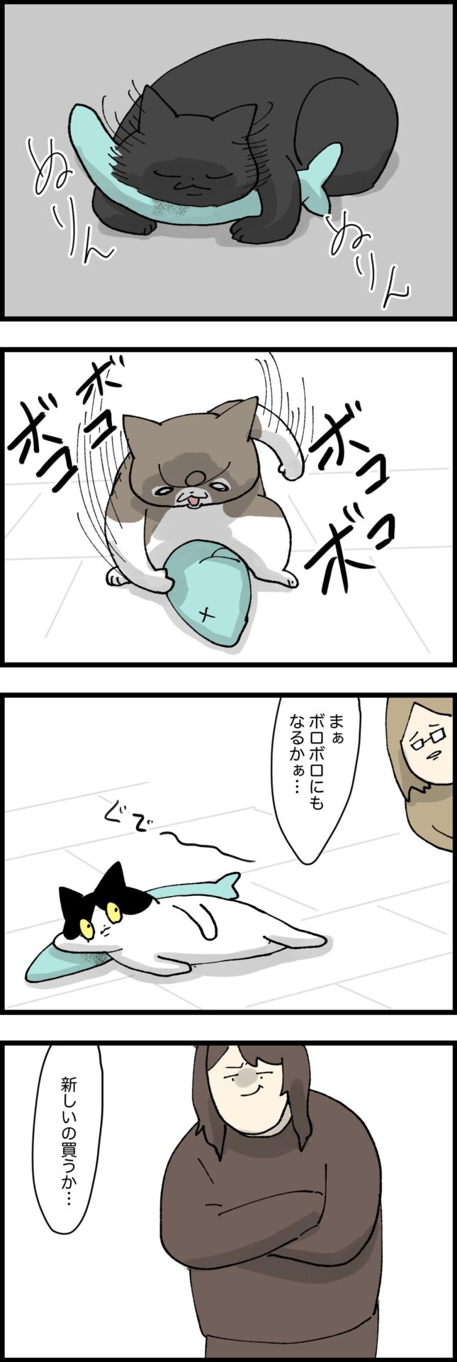 ぬいぐるみのその後 2024.02.02 猫について かるら, しゃら, しゅら, ふうや 本日のお話 新たなぬいぐるみ登場 なんか別のシリーズもあるらしいよ なんの汚れがついているのかは謎です。 広告 ぬりん・・・ ぬりん・・・・・・ タツノオトシゴも今ではだいぶ黒くなってます 大体かるら臭いってばよ お知らせ 広告 ねことおらの6月分の漫画をまとめたよ! 無料だよ!みてね! 0 同じカテゴリの記事 気合いの掛け声なのか 気分がいいと口元が緩むタイプらしい アラサー免許取得奮闘記 ⑩ 焦ると意味わかんない事しがち お腹の模様 すごい好きな子とすごい嫌いな子 アラサー免許取得奮闘記 ⑧ カッコ良すぎて気が付かなかった 地味に痛くて目が覚める ミラクルバウンド 頑固再び 春になると孤独になる・・・ 頑固すぎる猫 どちたの〜問題 自分の方が好かれてるアピしがち 終わりのない作業 自慢話じゃなかった話 人間の気持ち悪さが勝った どの時期も最上級の可愛さ 可愛いと聞いて集まる子達 フキハラを覚えた猫 よだれについて考える 味覚と視覚で楽しむ 微笑ましい気持ちで見てたら違った 謎のこだわり 許容範囲が謎 やられたらやり返す女 仲良くしたいのかも 遊びのルーティン 栓抜き職人 省エネスタイル 猫にも癖はあるのか 可愛い最強説 秘密にできない家庭 備えてて良かったこと 明確に意思持ってやってると思う 何度も騙される愚かな人間 家庭内のらっち 場所を奪う猫達 もじゃもじゃパーティー 後編 もじゃもじゃパーティー 人間が飛び起きる音 可愛い子への当たりが強い 多分わかっててやってる 扉の真ん中で止まりがち たまに心配になる 隣の芝は青いってやつ どうすることもできず座り続ける 理不尽な犯人扱い 恩を仇で返す系ガール 人の話をちゃんと聞こう うんこ落とし事件 美味しい物カロリー高い問題 もしかして一緒にご飯を食べたかった説 やって欲しい時にやってくれない 遊び方の癖が強い 冬に流行るもんじゃない おしっこ自由にする党 喜ばれるのは違うらしい 競い合う猫達 時々ある落とし物 お騒がせ女 後編 お騒がせ女 前編 魅惑のはみ出し 楽しんでるの見ると嬉しくなっちゃう 小さすぎる遊び道具 ブラッシング欲 見た目は子供!頭脳は大人! 嫌な匂いじっくりかいじゃうときある 賢いやじうま 若者に絡まれやすいシニア 寒いの我慢できないからさぁ 多分わざとやってる 証拠が残るのを嫌がる奴ら 濡れることを恐れぬ猫 似てきた2匹 難しいお年頃 水との戦いにハマる猫 呼ぶときの合図 家族には優しいと聞いて 後編 家族には優しいと聞いて 誰よりもストイック 温めブーム ハッピー張り切りデイ 新春!おしっこ大会! 今年こそ落ち着いてほしい ちょっと触っただけなのに 一番楽しそうな瞬間 寝ぼけながら無意識に猫を求めている ネットは都合のいい部分しか見ない 前歯ない疑惑 後編 前歯ない疑惑 前編 新しいしもべ認定 猫のためにやった事なのに 朝だけモテる サイレントオシッコアタック その瞬間全てが繋がった ちょうど良いお立ち台感 風呂に入れられてる猫を見るのが好きな猫 家中探しても見つからない日 寝具の装備が足りない 朝の猫チャージ 短いサービスタイム 猫も起きたくない時がある うちの子達がやりがちな事 猫の狙う場所を先回りしてる 閉じる時のタイミングが大事 全てにおしっこシート 全てを奪っていく女 新しいおもちゃ観察しがち ちょっと調子に乗りすぎた いてもいなくても怖い話 こたつ・・・いい奴だったよ・・・ つけると確かに人気になれる 健康ではあって欲しいけど文句は言いたい 猫界隈で話題になってるこたつ 油断も隙もない女 必要最低限の動きしかしない 夢と現実って連動する時あるよね 縮まらない距離感 病気になるよりその辺にされた方がいい 寝床争奪戦 抗えない温もり 冬でもしっかり水を飲む奴ら 猫のトイレ洗った日 おもしれー茶トラ達 一回一回孤独タイムが入る男 表情までくっきり 猫の温もり凄まじい バウンサーと猫 宝探し気分 エンドレスおしっこシート交換 お尻で病院に行った話 後編 我慢できなかった わざとやった可能性あり 寒くなるといい事もある 緊急でお風呂に入った日 後編 緊急でお風呂に入った日 前編 思わず直接文句言いに行った この時期になると増えてくる報告 たまに強まる外への憧れ 若い子達のヤンキー化 変な所についていたブツ 全てを食らう猫 開けたら閉めてほしい 省エネで触られるの嫌がる奴 動けない時に狙われがち ボール好き猫 ひたすらに自分勝手な奴 落ち着いてゆっくり食べてほしい 抱っこ拒否猫 新しいおもちゃへの予想外の反応 決定的瞬間をとらえたカメラ 時々我に返って疑問に思う どうにかご飯から逃げようとする奴 ブラッシングはやりすぎるとハゲる すごい集まってきてくれた話 変化する関係 寝にくい所を好む猫達 尻尾周辺に対して厳しい 生殺与奪の権を持った猫 たまに訪れるサービスタイム ひっそり甘えたいタイプ 尻叩き職人の苦悩 定期的にお騒がせする女 後編 定期的にお騒が