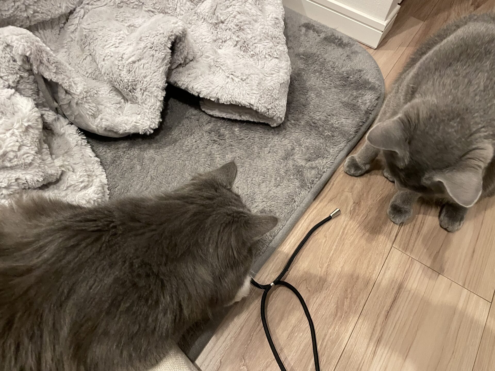 まだ距離があるもんでおもちゃで誘き寄せないとシャンプーくんは一定の距離を保ってくる