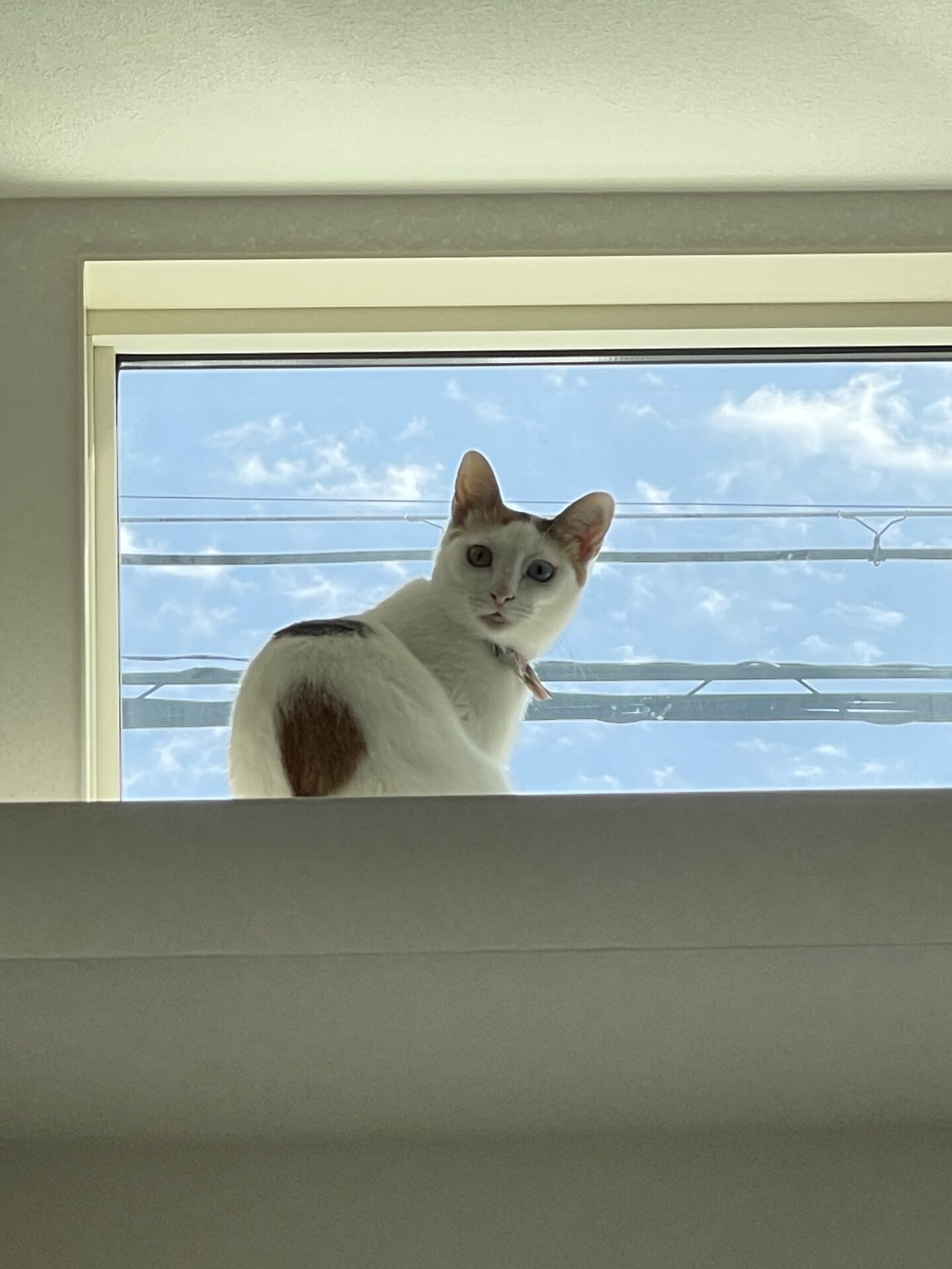 首輪は母の手作りです、おリボンつきで可愛い。