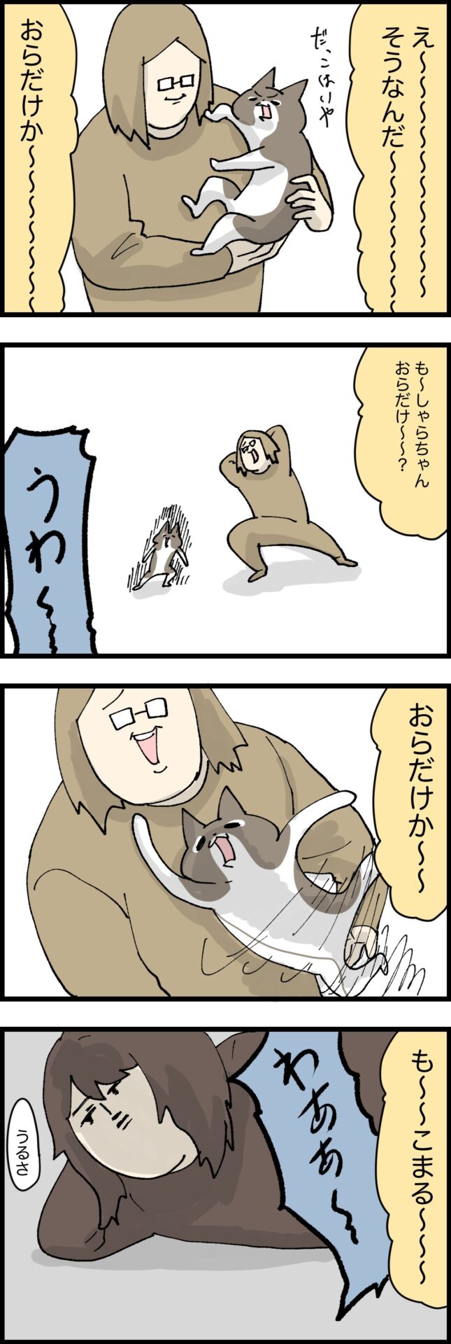 自分だけ特別らしい 2024.02.13 猫について しゃら 本日のお話 おらだけにこの態度なのか〜〜〜〜〜〜!!!! そっか〜〜〜〜〜! iPadは座布団ではない 本日の猫達 広告 目が合うとうわーが止まらないのである よしよしされてる ちょっと見える歯がかわちぃ 添い寝してくれるかりょうちゃま お知らせ 広告 ねことおらの6月分の漫画をまとめたよ! 無料だよ!みてね! 0 同じカテゴリの記事 気合いの掛け声なのか 気分がいいと口元が緩むタイプらしい アラサー免許取得奮闘記 ⑩ 焦ると意味わかんない事しがち お腹の模様 すごい好きな子とすごい嫌いな子 アラサー免許取得奮闘記 ⑧ カッコ良すぎて気が付かなかった 地味に痛くて目が覚める ミラクルバウンド 頑固再び 春になると孤独になる・・・ 頑固すぎる猫 どちたの〜問題 自分の方が好かれてるアピしがち 終わりのない作業 自慢話じゃなかった話 人間の気持ち悪さが勝った どの時期も最上級の可愛さ 可愛いと聞いて集まる子達 フキハラを覚えた猫 よだれについて考える 味覚と視覚で楽しむ 微笑ましい気持ちで見てたら違った 謎のこだわり 許容範囲が謎 やられたらやり返す女 仲良くしたいのかも 遊びのルーティン 栓抜き職人 省エネスタイル 猫にも癖はあるのか 可愛い最強説 秘密にできない家庭 備えてて良かったこと 明確に意思持ってやってると思う 何度も騙される愚かな人間 家庭内のらっち 場所を奪う猫達 もじゃもじゃパーティー 後編 もじゃもじゃパーティー 人間が飛び起きる音 可愛い子への当たりが強い 多分わかっててやってる 扉の真ん中で止まりがち たまに心配になる 隣の芝は青いってやつ どうすることもできず座り続ける 理不尽な犯人扱い 恩を仇で返す系ガール 人の話をちゃんと聞こう うんこ落とし事件 美味しい物カロリー高い問題 もしかして一緒にご飯を食べたかった説 やって欲しい時にやってくれない 遊び方の癖が強い 冬に流行るもんじゃない おしっこ自由にする党 喜ばれるのは違うらしい 競い合う猫達 時々ある落とし物 お騒がせ女 後編 お騒がせ女 前編 魅惑のはみ出し 楽しんでるの見ると嬉しくなっちゃう 小さすぎる遊び道具 ブラッシング欲 見た目は子供!頭脳は大人! 嫌な匂いじっくりかいじゃうときある 賢いやじうま 若者に絡まれやすいシニア 寒いの我慢できないからさぁ 多分わざとやってる 証拠が残るのを嫌がる奴ら 濡れることを恐れぬ猫 似てきた2匹 難しいお年頃 水との戦いにハマる猫 呼ぶときの合図 家族には優しいと聞いて 後編 家族には優しいと聞いて 誰よりもストイック 温めブーム ハッピー張り切りデイ 新春!おしっこ大会! 今年こそ落ち着いてほしい ちょっと触っただけなのに 一番楽しそうな瞬間 寝ぼけながら無意識に猫を求めている ネットは都合のいい部分しか見ない 前歯ない疑惑 後編 前歯ない疑惑 前編 新しいしもべ認定 猫のためにやった事なのに 朝だけモテる サイレントオシッコアタック その瞬間全てが繋がった ちょうど良いお立ち台感 風呂に入れられてる猫を見るのが好きな猫 家中探しても見つからない日 寝具の装備が足りない 朝の猫チャージ 短いサービスタイム 猫も起きたくない時がある うちの子達がやりがちな事 猫の狙う場所を先回りしてる 閉じる時のタイミングが大事 全てにおしっこシート 全てを奪っていく女 新しいおもちゃ観察しがち ちょっと調子に乗りすぎた いてもいなくても怖い話 こたつ・・・いい奴だったよ・・・ つけると確かに人気になれる 健康ではあって欲しいけど文句は言いたい 猫界隈で話題になってるこたつ 油断も隙もない女 必要最低限の動きしかしない 夢と現実って連動する時あるよね 縮まらない距離感 病気になるよりその辺にされた方がいい 寝床争奪戦 抗えない温もり 冬でもしっかり水を飲む奴ら 猫のトイレ洗った日 おもしれー茶トラ達 一回一回孤独タイムが入る男 表情までくっきり 猫の温もり凄まじい バウンサーと猫 宝探し気分 エンドレスおしっこシート交換 お尻で病院に行った話 後編 我慢できなかった わざとやった可能性あり 寒くなるといい事もある 緊急でお風呂に入った日 後編 緊急でお風呂に入った日 前編 思わず直接文句言いに行った この時期になると増えてくる報告 たまに強まる外への憧れ 若い子達のヤンキー化 変な所についていたブツ 全てを食らう猫 開けたら閉めてほしい 省エネで触られるの嫌がる奴 動けない時に狙われがち ボール好き猫 ひたすらに自分勝手な奴 落ち着いてゆっくり食べてほしい 抱っこ拒否猫 新しいおもちゃへの予想外の反応 決定的瞬間をとらえたカメラ 時々我に返って疑問に思う どうにかご飯から逃げようとする奴 ブラッシングはやりすぎるとハゲる すごい集まってきてくれた話 変化する関係 寝にくい所を好む猫達 尻尾周辺に対して厳しい 生殺与奪の権を持った猫 たまに訪れるサービスタイム ひっそり甘えたいタイプ 尻叩き職人の苦悩 定期的にお騒がせする女 後編 定期的にお騒がせする女 前