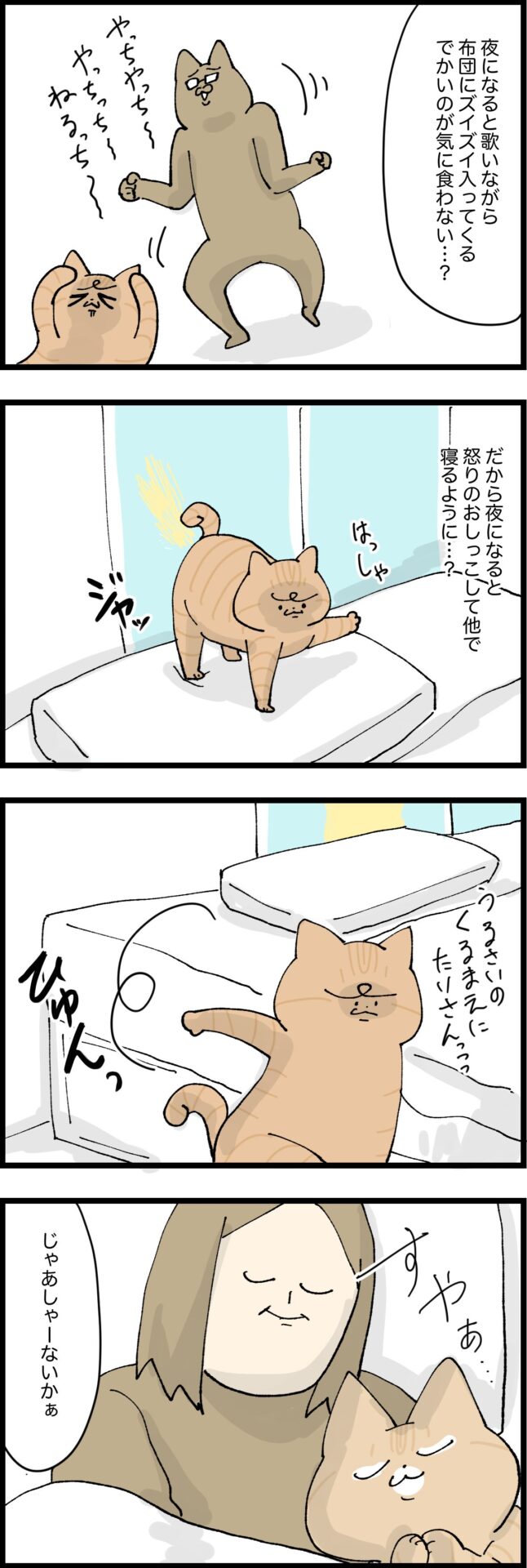 シングルベッドに2人で寝てるのに人間入ってきたら狭いわね・・・