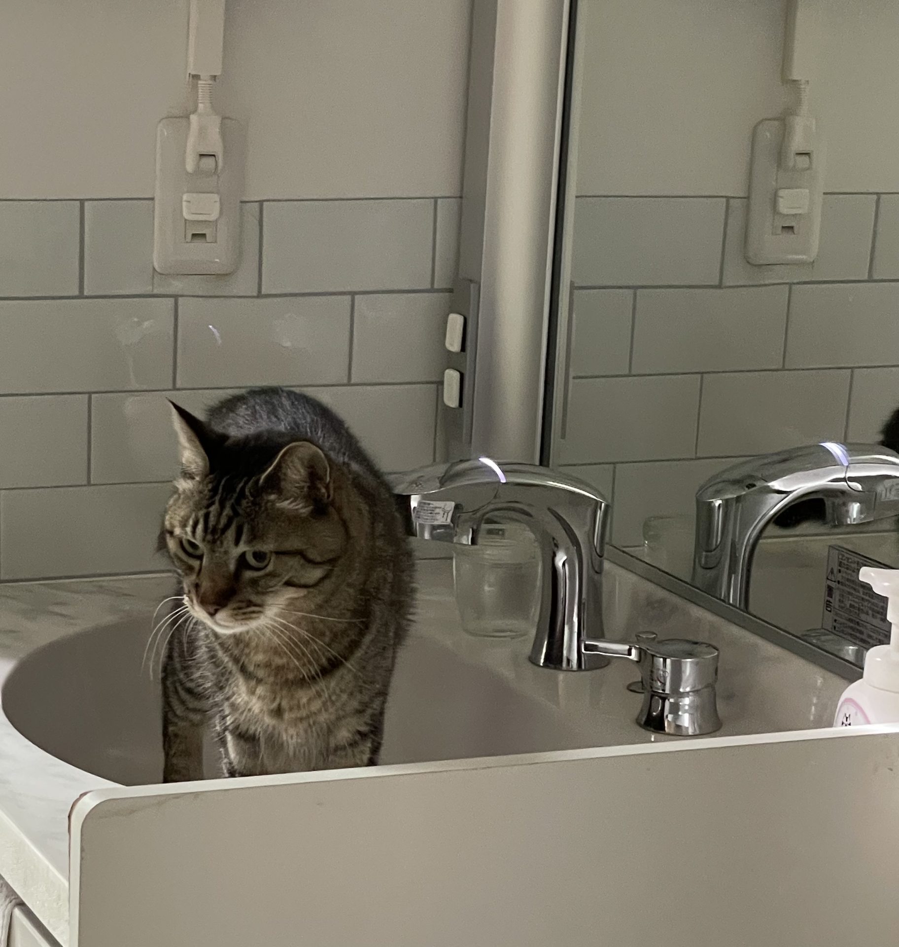 洗面台の中に佇むらいくん