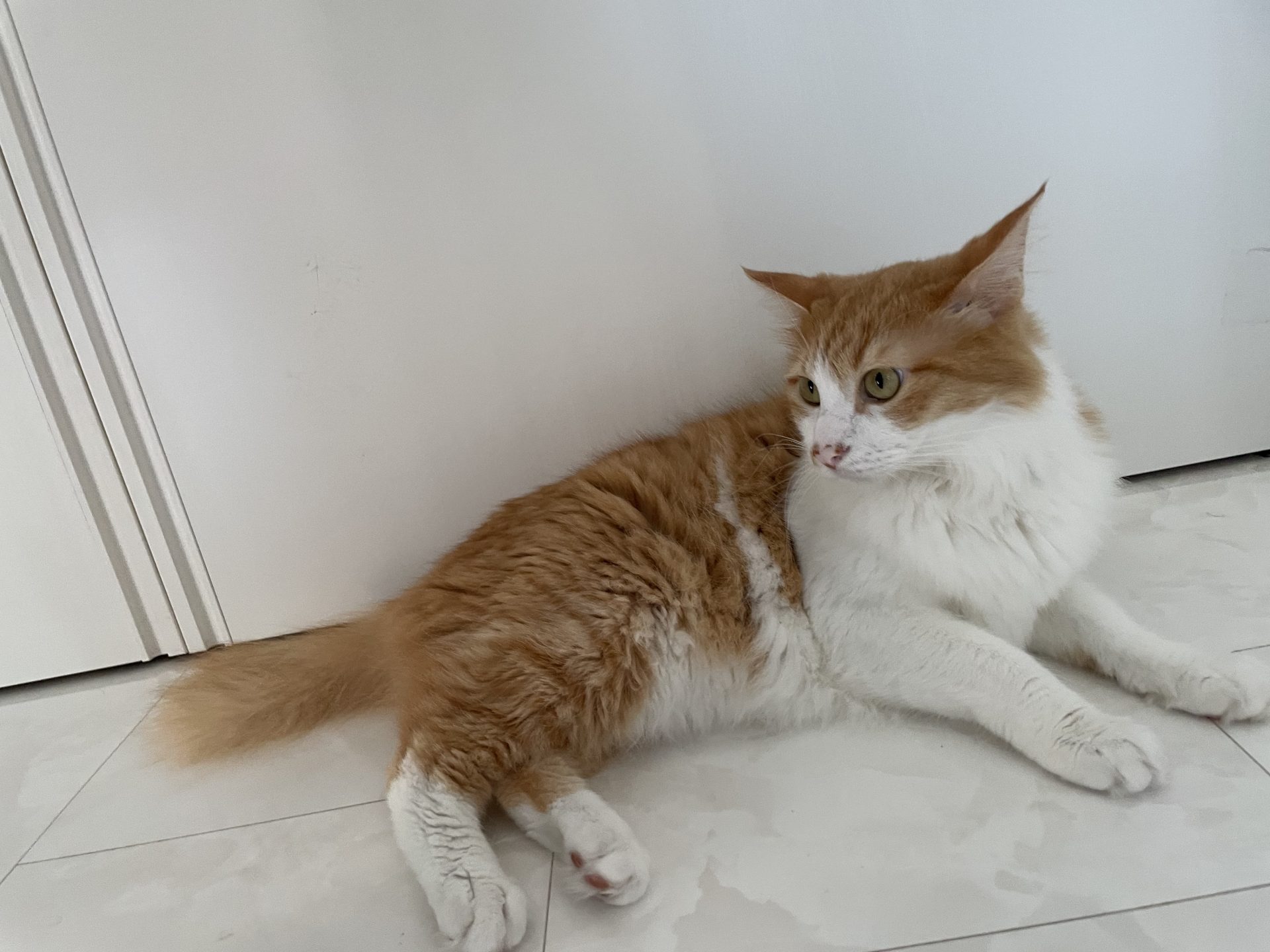 お外で熱々になったので冷たい床で冷やし中