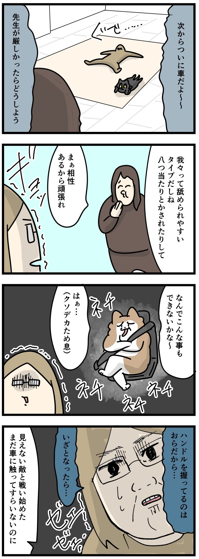 運転するのも怖いし教官もどんな人達かわかんないから怖いし