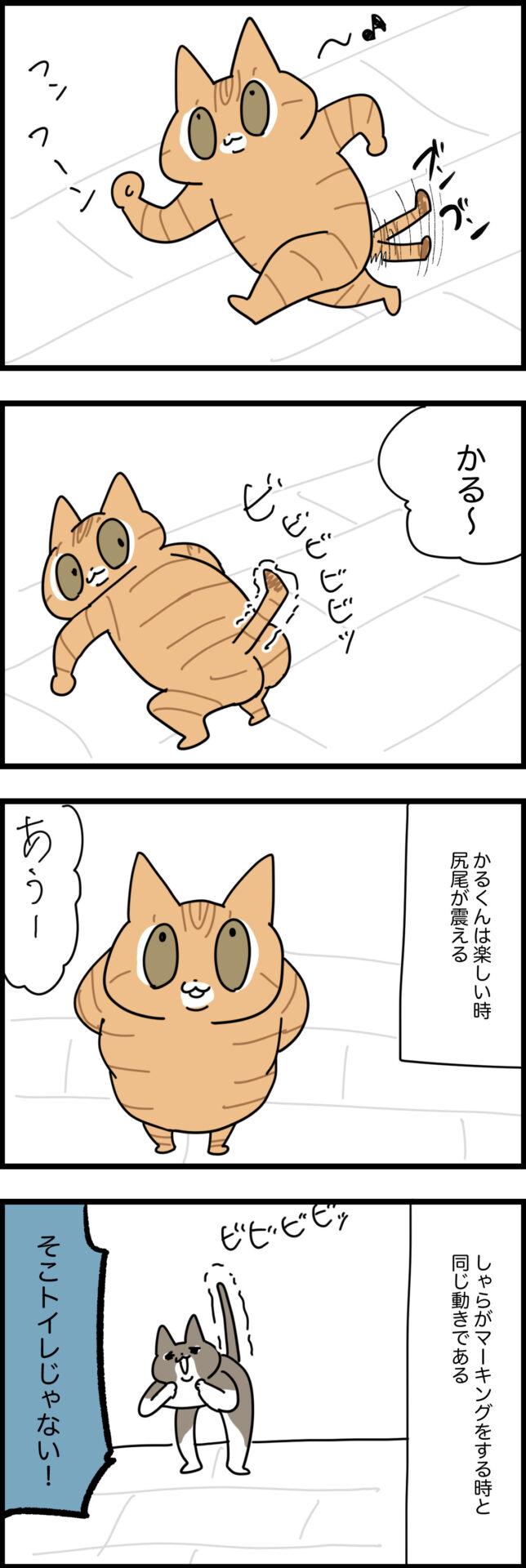 楽しかったり体伸ばしたりする時に尻尾震えるかるら、たもんでした。