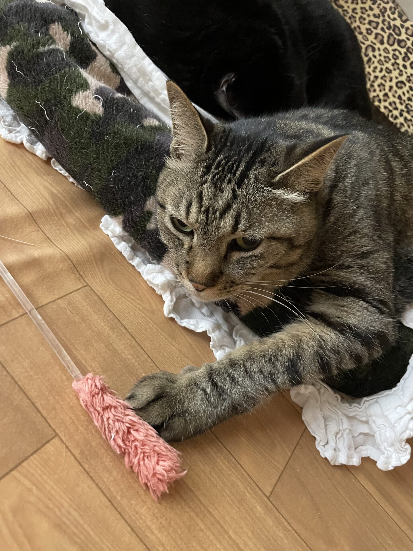 さりげなく猫じゃらしに触っているライライさん